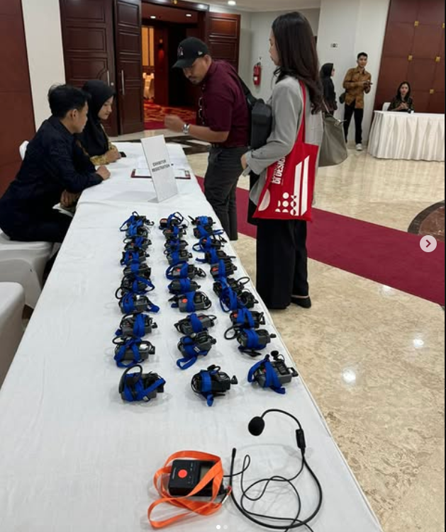 - Perangkat Headset & Earphone: Kami menggunakan perangkat yang ergonomis dan ringan, sangat nyaman digunakan oleh peserta meskipun acara berlangsung seharian.