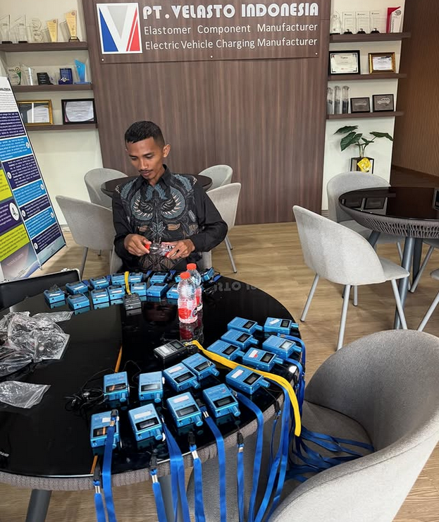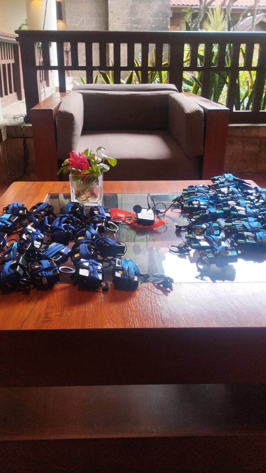 Teknisi Daxell Rental sedang menyiapkan peralatan audio guide untuk tur grup internasional.