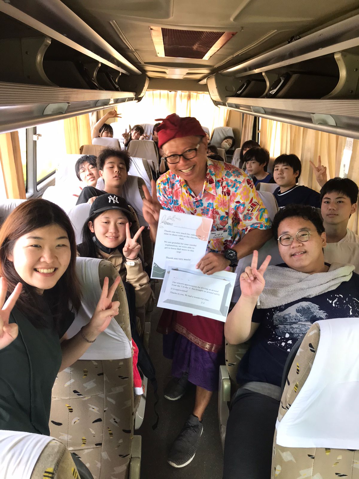 Para peserta Tur naik Bis. Alat Gadget dengan Earphone bisa digunakan di dalam bis sehingga peserta tur wisata / pabrik sudah disiapkan materi untuk tur di dalam bis
