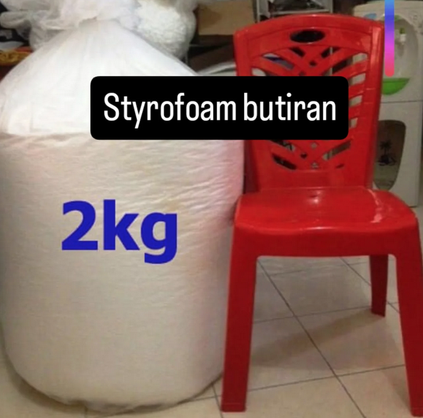Foto di atas adalah Gabus Butiran yang disebut Styrofoam untuk isi beanbag, bantal tidur atau boneka. Ada jenis buliran seperti rinso dan kacang hijau.