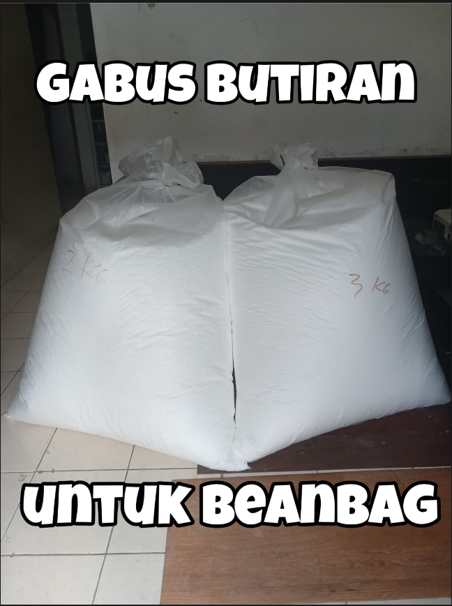 - juga buliran gabus sebesar lada untuk digunakan sebagai sumpelan boneka atau pun sofa bean bag.